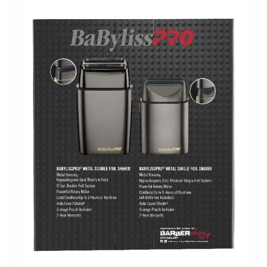 BaBylissPRO Gunmetal Single & Double Foil Shaver Duo Cordless Barber Starter Kit
